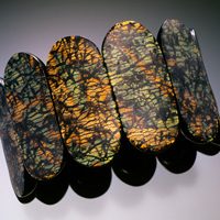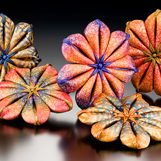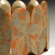 “The decorative results of ornamentation and the innate harmony of geometry are the foundation of my artistic exploration. Attention to the surface allows for a wide range of patterning effects as well as investigations of color and scale. My color palettes reflect different historical artists such as Hokusai, Winslow Homer and William Morris and my selection of patterns seeks to be relevant to the artist or at least an appropriate cultural time frame. This is however always meant to be evocative, rather than explicit. The juxtaposition of a thoroughly modern material with historical referencing brings the past to the present and the present into contact with the past. The inherent balance of most geometric form offers classically derived structure for my richly adorned surfaces.” – Rachel Carren